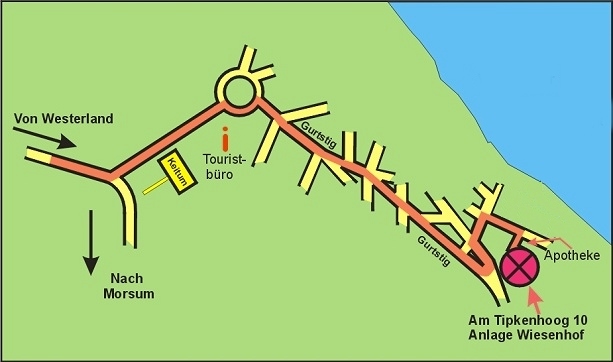 An der folgenden Verkehrsampel biegen Sie rechts in Richtung Keitum ab.